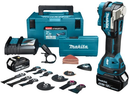 De Makita accu multitool DTM51 is een oscillerende multitool die kan schuren, schrapen, snijden en zagen. Door het snelspansysteem kan je alle opzetstukken snel en zonder gereedschap wisselen. Het gebruikscomfort van de machine is hoog door het ergonomische ontwerp. Door de stofafzuiging is het mogelijk om stofvrij te werken. Met de draaiknop kan je de toerenregeling instellen, dit doe je voor de verschillende tools.